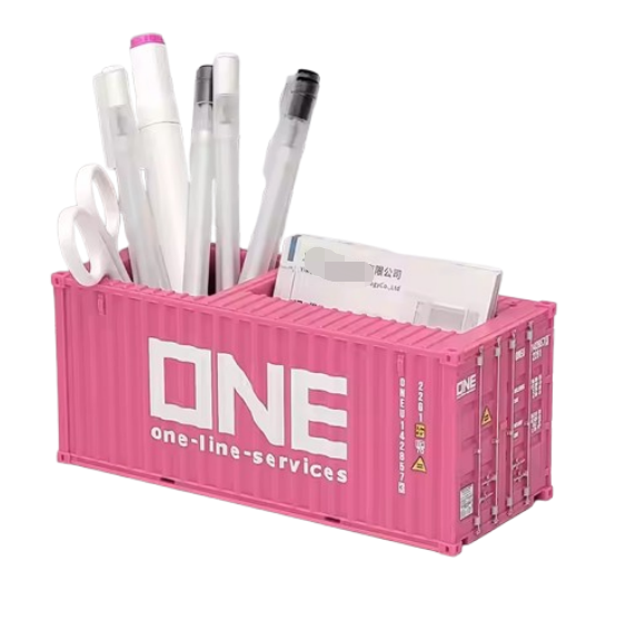 Custom container-shaped pen holders designed like mini shipping containers. A creative and functiona
